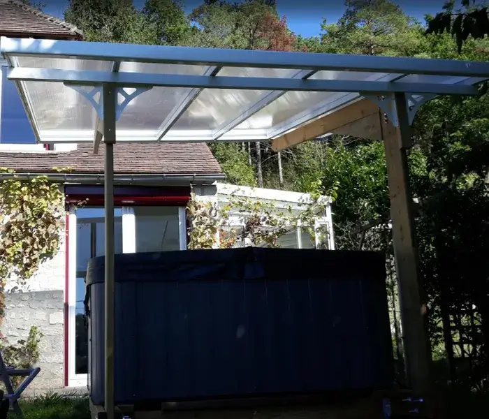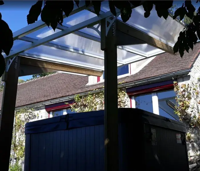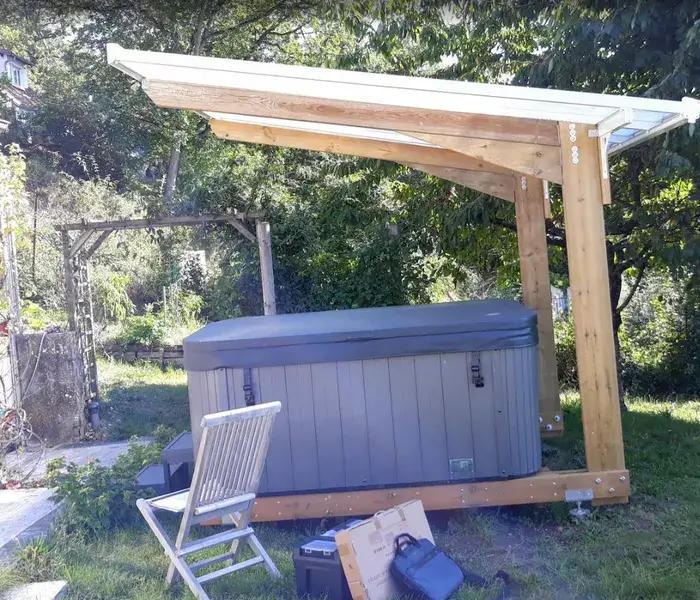 Installation d’un spa de détente sur pieux à visser et marquise à Boissy la rivière (91)