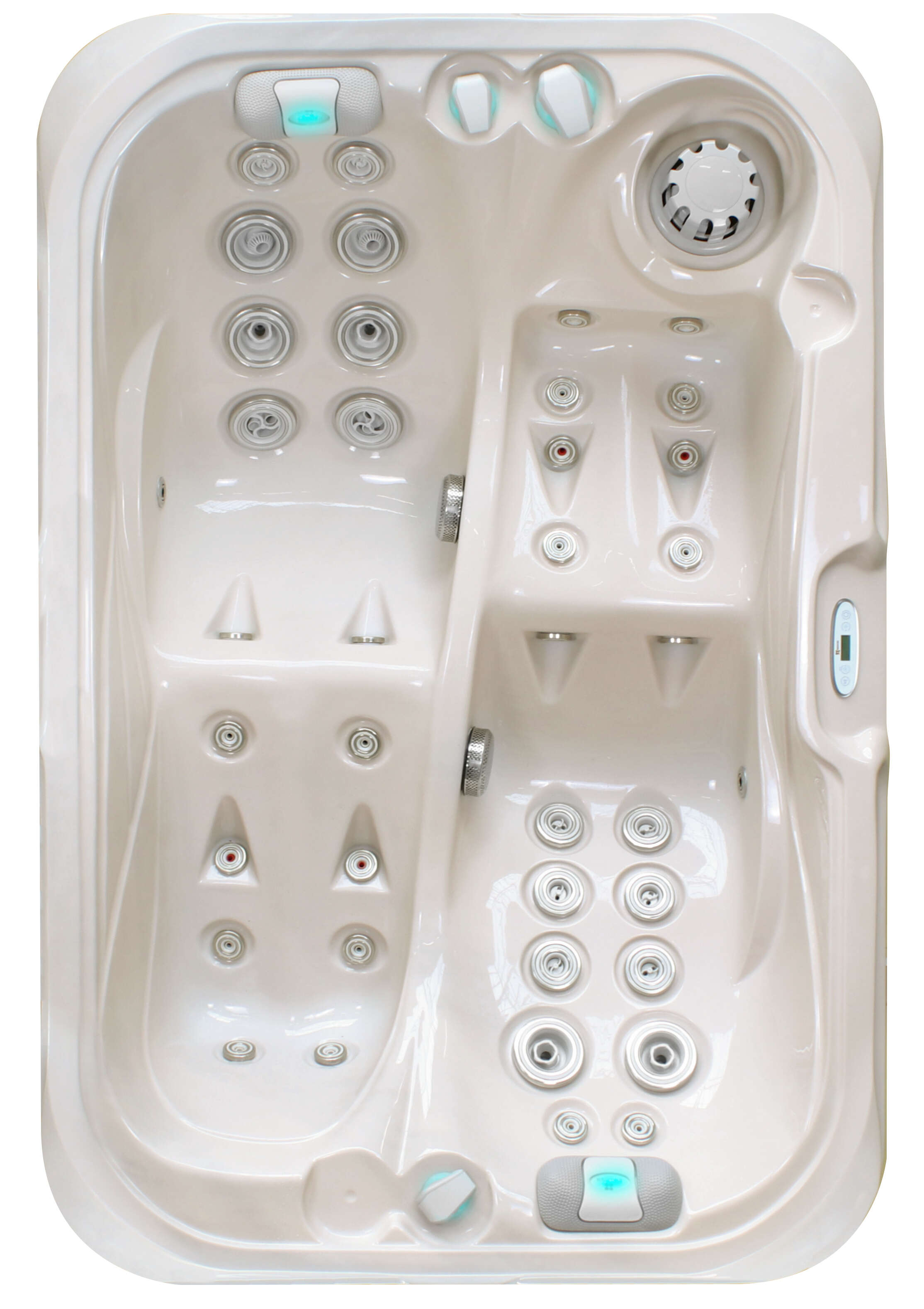 Equipé de 2 pompes de massage 1 pompe de circulation et 70 jets