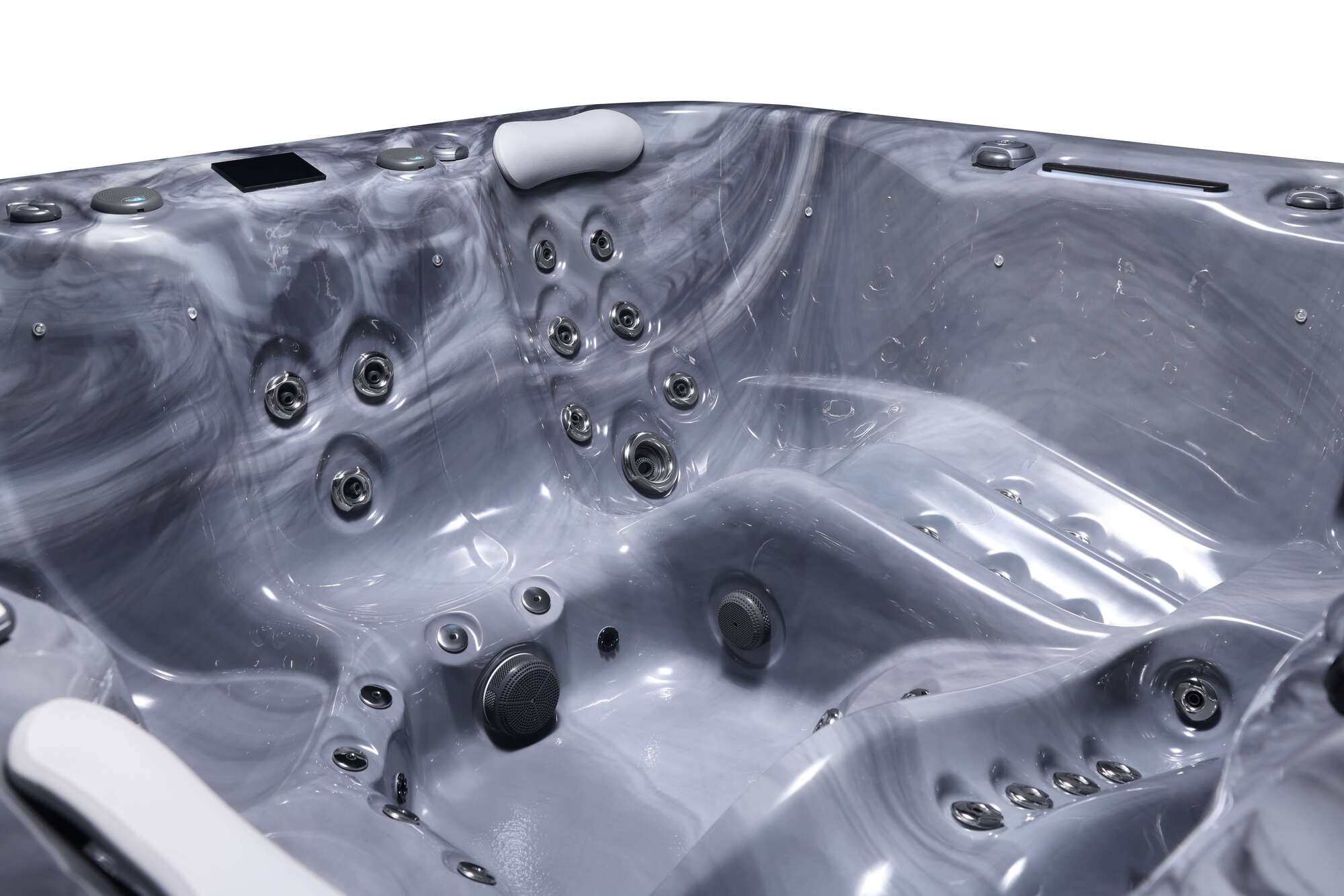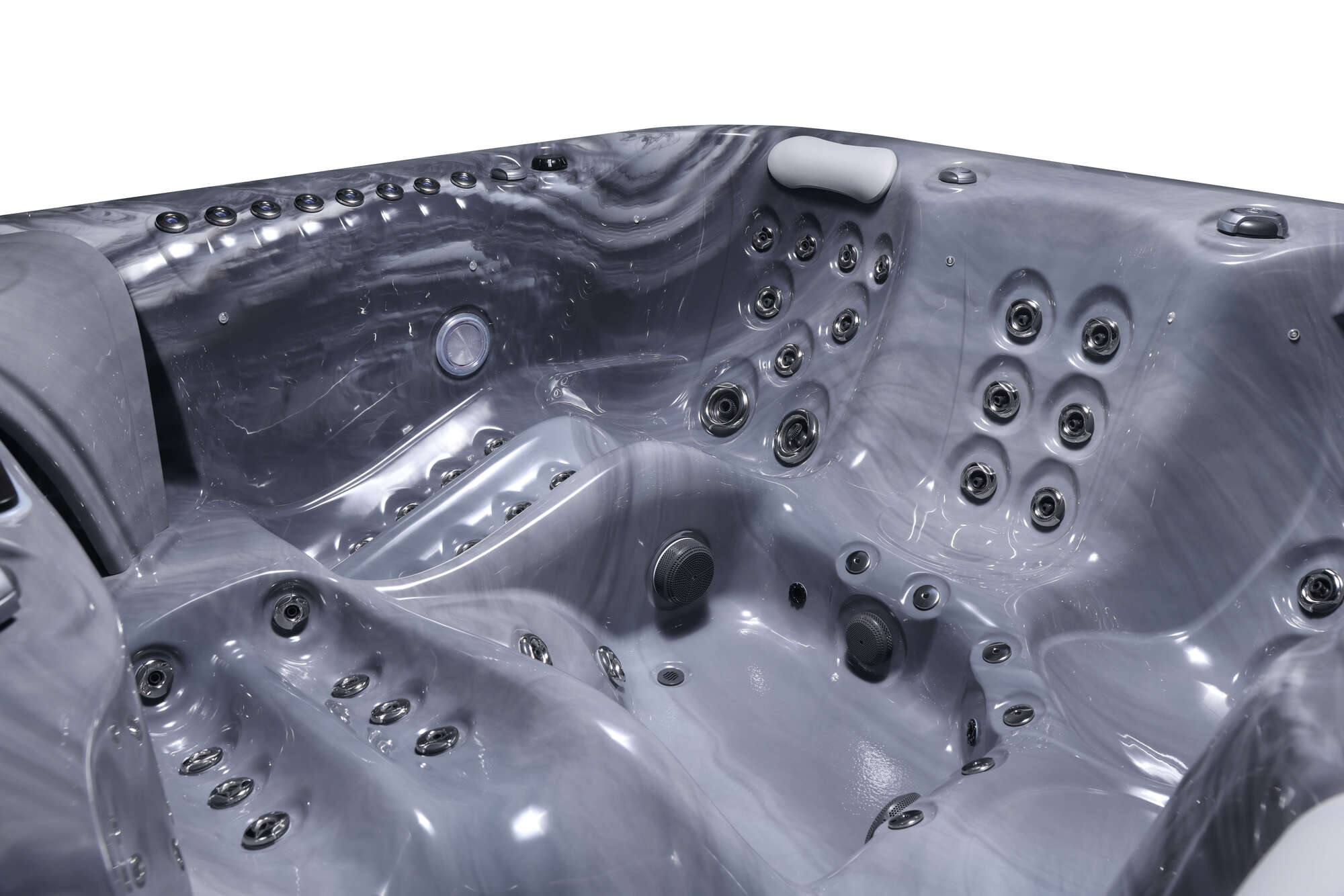 Ce modèle intègre 2 transats et 3 sièges. Le concept du moule de la coque offre des sièges très profonds, la forme de main courante permet un maintien du corps optimisant la détente.